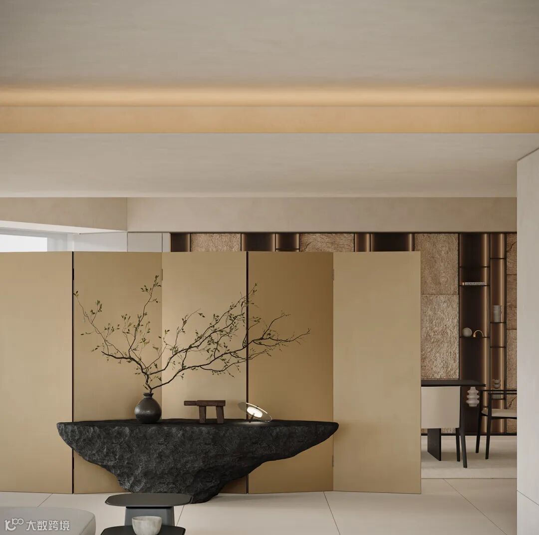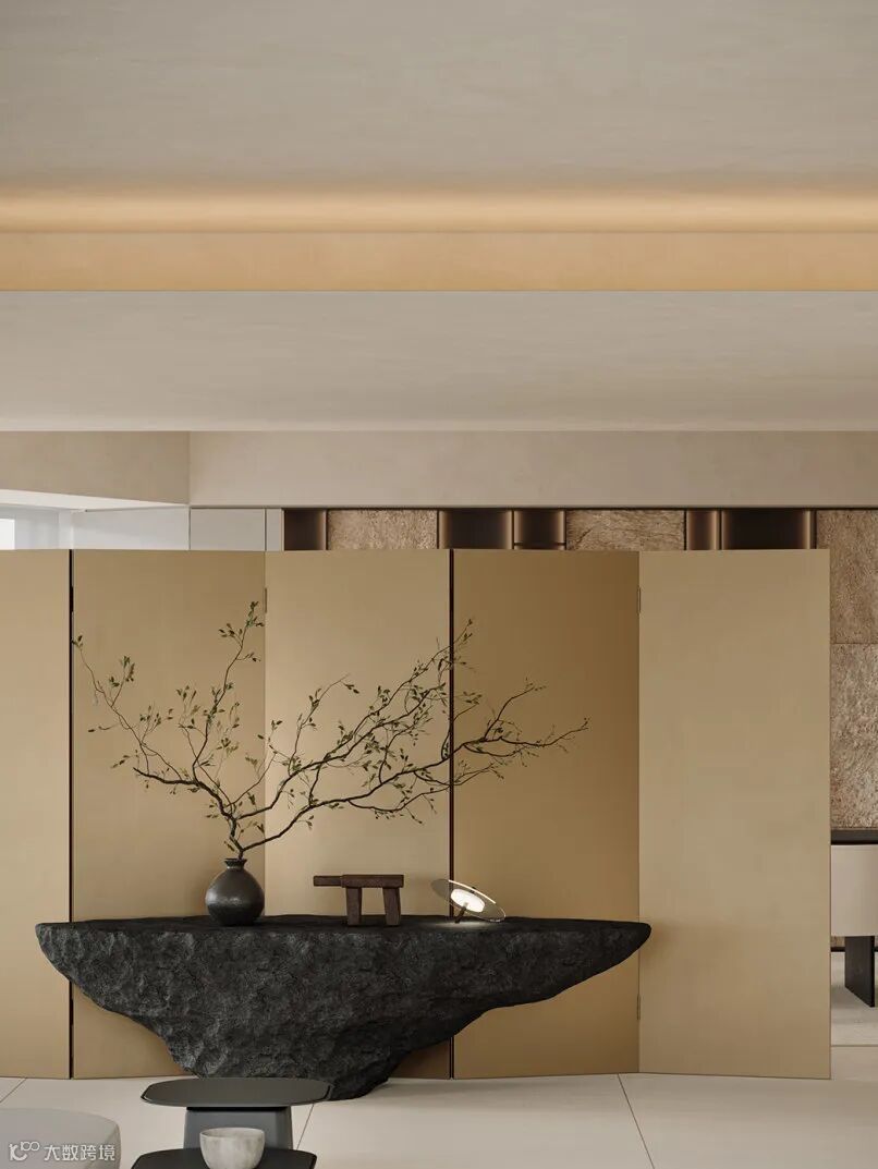 屏风与摆件的搭配,让空间充满禅韵;现代设计感的家具,让空间设计不拘泥于一种风格形式,个性的表达成为主流。