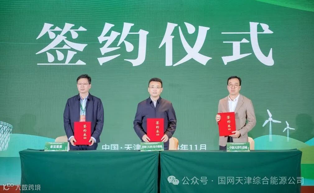 11月8日,国网(天津)综合能源服务有限公司作为绿电售电公司分别与渤化化工发展有限公司、华润新能源(阿巴嘎旗)有限公司,中新天津生态城、泰富能源有限公司,中沙(天津)石化有限公司、深圳能源有限公司签订三份绿色电力框架合作协议。此次参与签约用电企业的用电规模预计约41.17亿千瓦时,是目前为止天津滨海新区引入的最大规模域外绿电,也是天津滨海新区首次引入锡盟绿电。