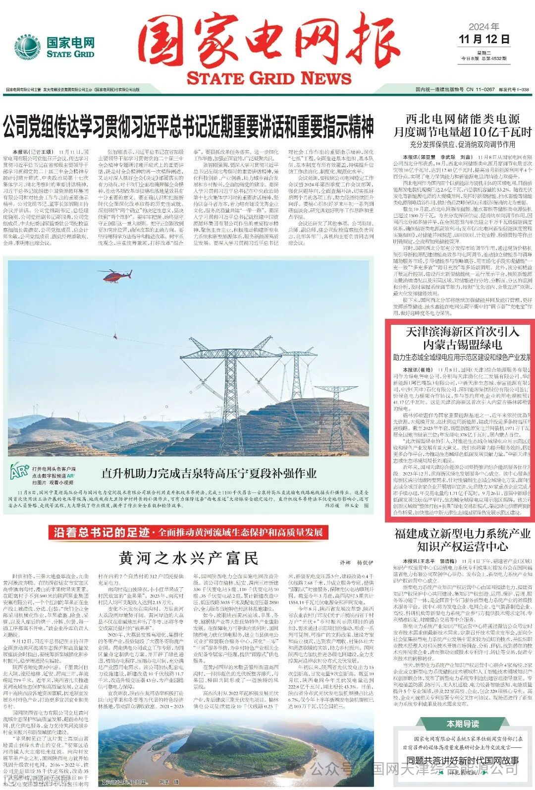 《国家电网报》头版报道