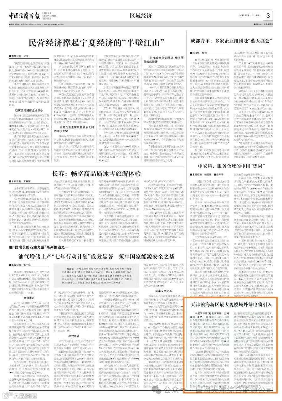 《天津滨海新区最大规模域外绿电将引入》