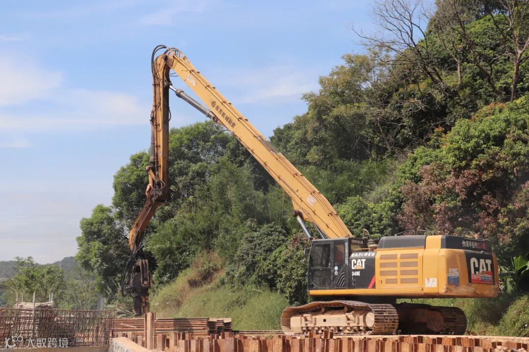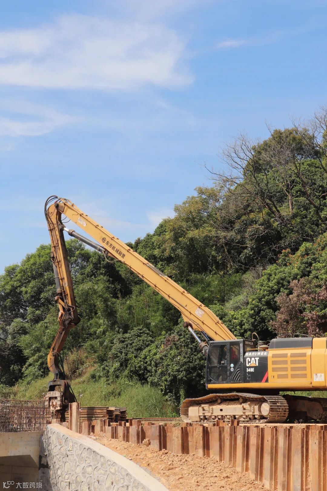 刘家庄河桥涵拔一期钢板桩支护,型号:349EL桩机。