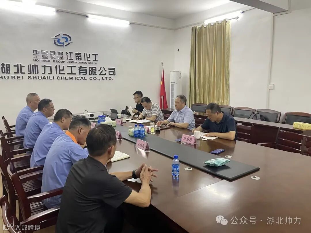 近日,湖北省安委办负责人潘国强、省国防科工办二级调研员朱志兴一行在湖北帅力化工有限公司督导安全生产治本攻坚三年行动工作。