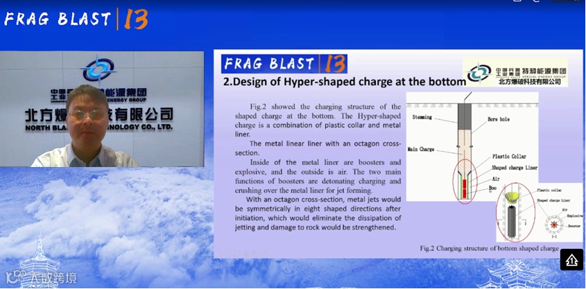 第13届爆破破岩国际会议(FRAGBLAST13)于2022年10月16-19日在杭州召开,会议采取线上线下结合的方式,来自全球24个国家的160余名专家学者参加会议,中国爆破行业协会会长谢先启院士出席会议并致词。北方爆破公司连续2届受邀参会,余德运博士作了题为《Research on Hyper-shaped Charge at the Bottom of Column Charge Blasting》的报告,介绍了一种利用孔底超聚能技术降低台阶爆破超深长度并提高底板平整度的孔底超聚能爆破技术。该技术是基于学科交叉的原创技术,能够有效减少钻孔长度,降低装药量。同时,还推出了孔底超聚能器系列产品,现场各国学者进行了热烈的交流与探讨。