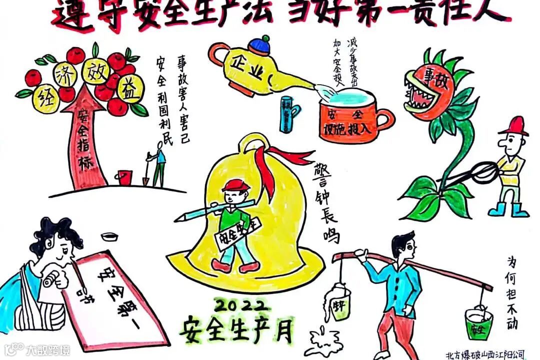 北方爆破、绵竹兴远、中矿天沃等单位基层员工积极绘制安全生产主题漫画,通过卡通形象生动、传神地体现安全生产各方面知识,达到了良好的宣传效果。