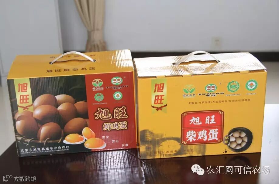 合作社于2009年1月注册了“旭旺”商标,企业严格执行从采收、分检、储存、加工到包装、销售各环节实现一条龙生产。市场销售的每箱“旭旺”牌有机柴鸡蛋,可直接追溯到具体生产的农户。