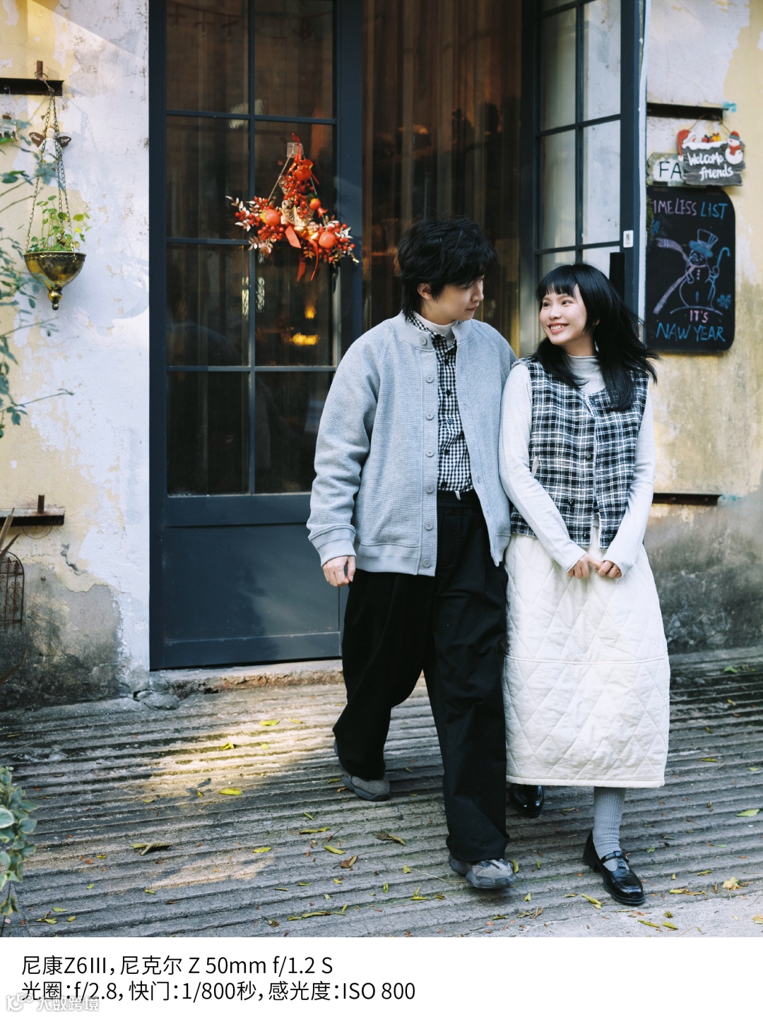 这次拍摄,我选择了充满创意氛围的园区,这里的书店和庭院满是生活气息。模特们身着日常随性的服装,为画面增添了满满的生活感。我选用尼康Z6Ⅲ搭配尼克尔 Z 50mm f/1.2 S镜头,而50mm的焦段,视角与人眼视觉感受接近,呈现出的空间感和透视效果更为真实。此外,f/1.2大光圈不仅能在昏暗环境下保证充足的光线,减少手持抖动模糊,还能根据场景需求,轻松切换大场景与特写画面,让杂乱的场景也能变得简洁干净。