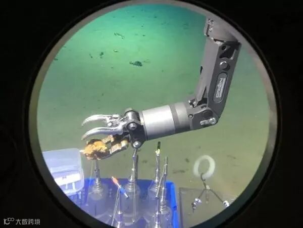△“蛟龙”号机械臂在海底获取岩石样品