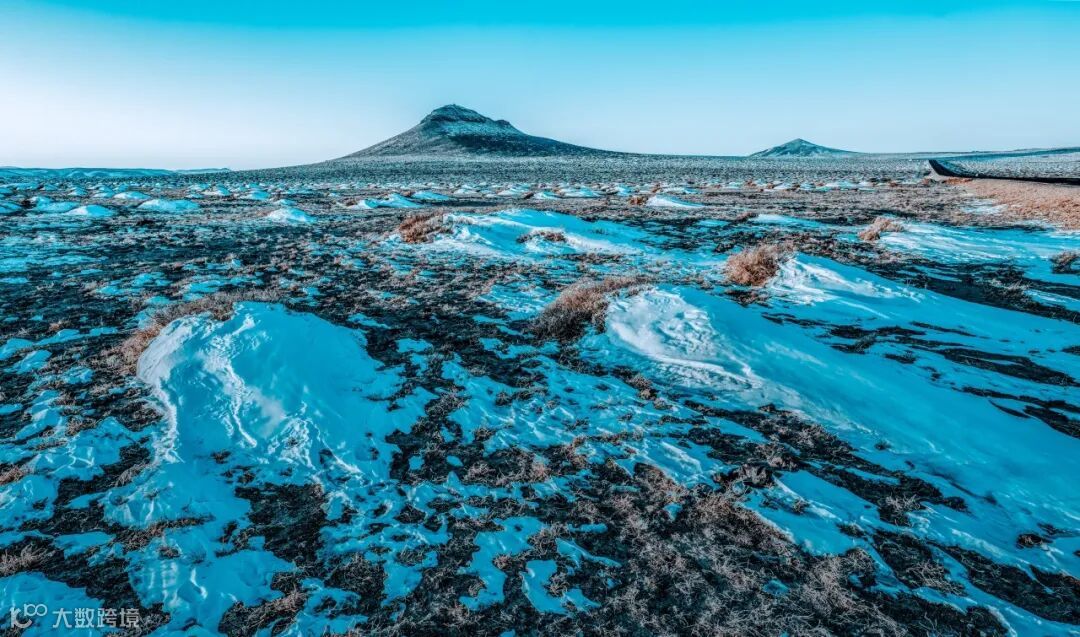 在这张照片中,我捕捉到了一个被风雕琢过的雪堆场景。风面一侧的雪几乎完全被吹散,而背风面则堆积起了一座雪的“小丘”,形成了强烈的对比和视觉冲击力。