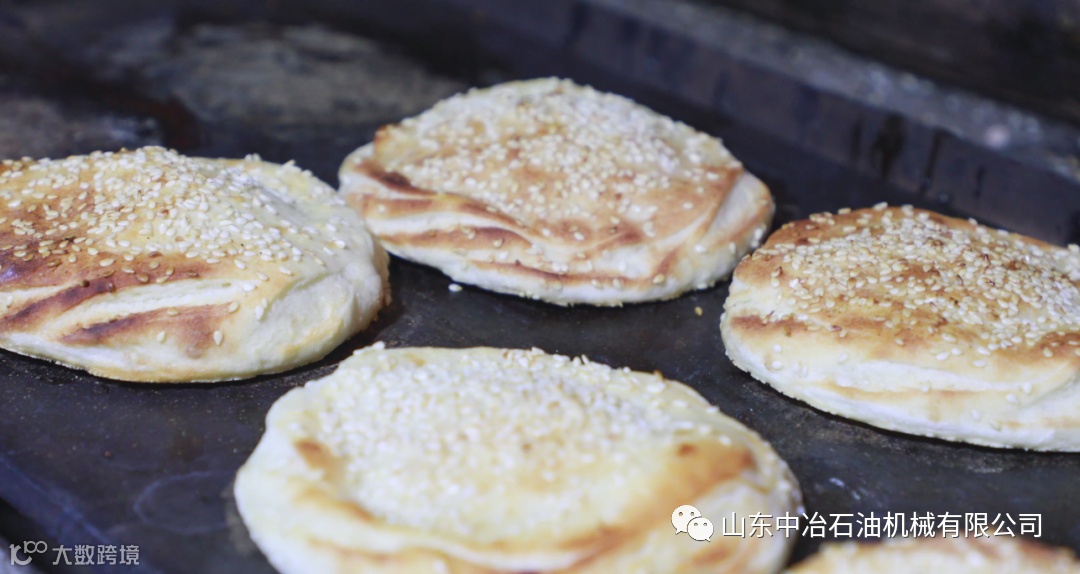 炊饼圆形,外表有一层芝麻,两面相似,炊饼外部有些干焦,呈琥珀色,内部有一夹层,夹层内是盐和胡椒粉,外焦内柔,韧性十足。