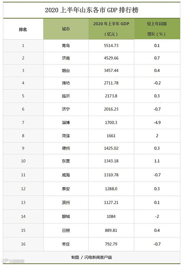山东上半年成绩单出炉,10市GDP增速由负转正