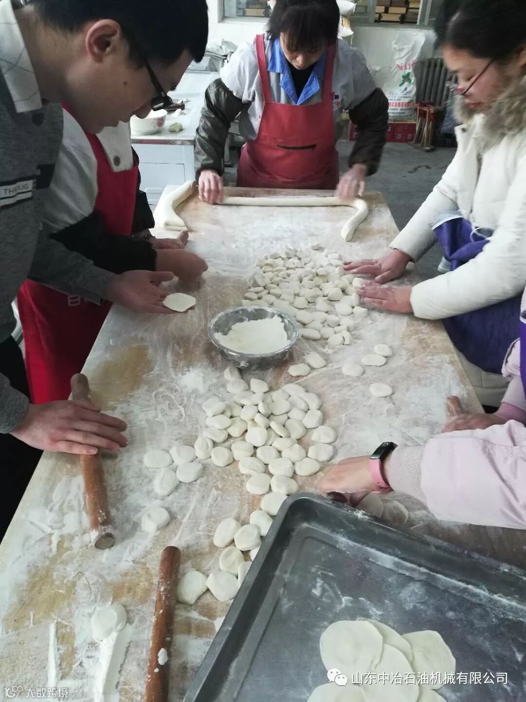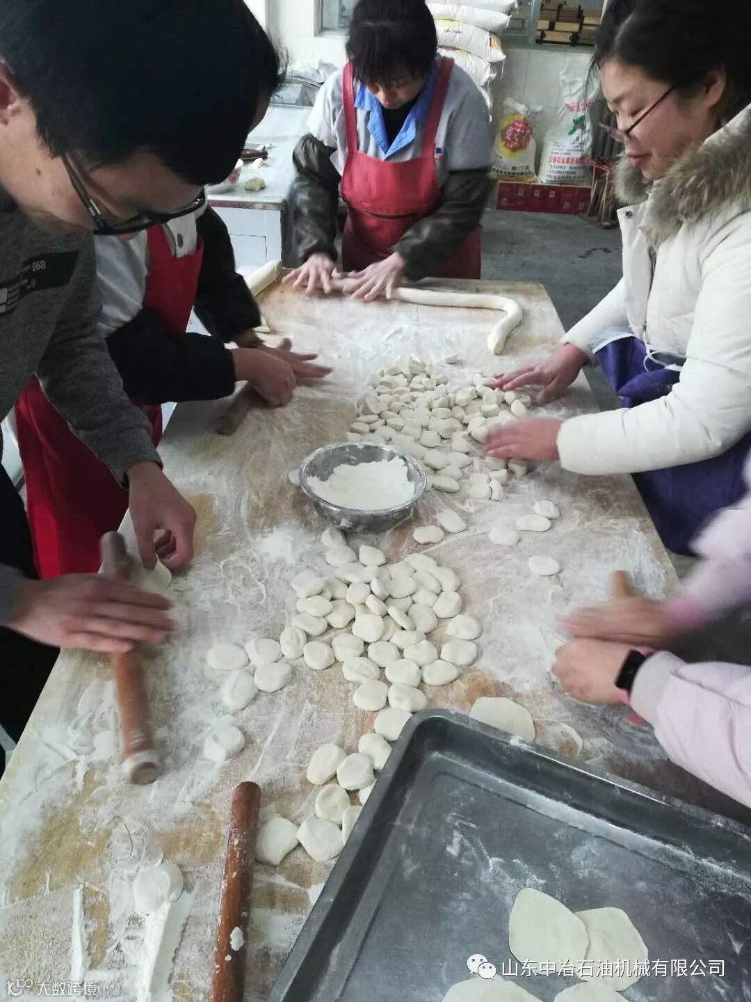 ,回到公司和同事们当然也要吃一顿水饺,这不,中冶的同事们一起上餐厅来帮忙。