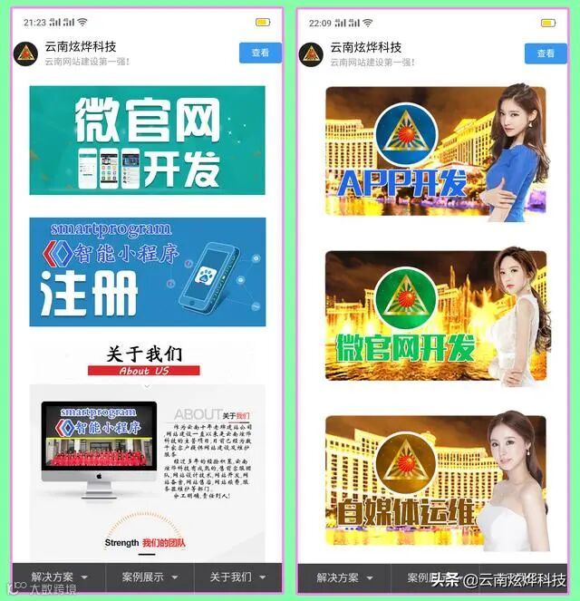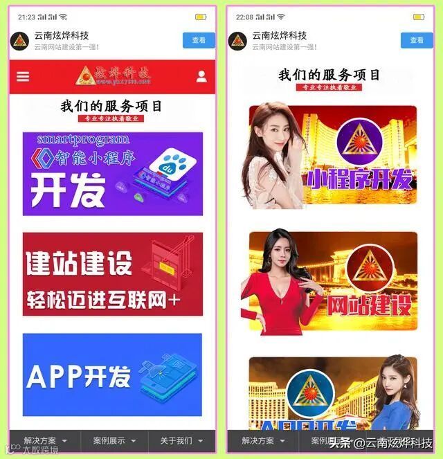 并且这个样式一用即是5年多,在这5年里任凭世界怎么变云南炫烨科技的官网就是不变。在这5年里技术其实是有在更新的且最起码更新了3次,第一次是微信的微网站系统,第二次则是微信小程序,第三次则是各类小程序网站建设时代。