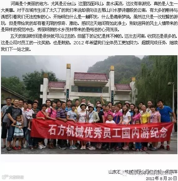 这是2011年优秀员工旅游图片。2017年国内游33人,省内烟台度假26人;下面看看我们优秀员工旅游的分享: