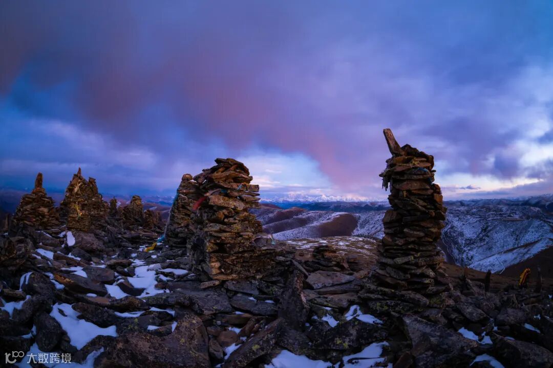 在传统的超广单张照片拍摄下,这里的山都几乎会被拉平,感受不到雪山的“尖”,而在我这张照片里面没有这样的情况,山峰几乎都是标准大小,与肉眼所见并无二致,这便是鱼眼超广角镜头特有的视觉表现。