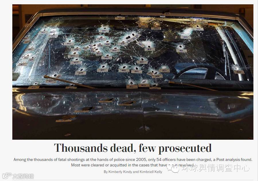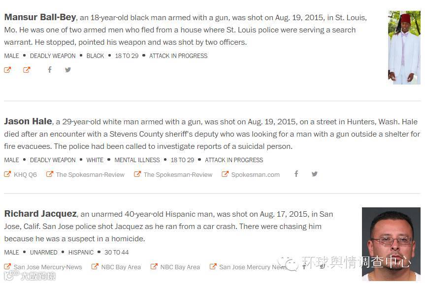 (根据《华盛顿邮报》提供的数据,仅2015年6月一个月,全美至少有60人死于警方枪击)