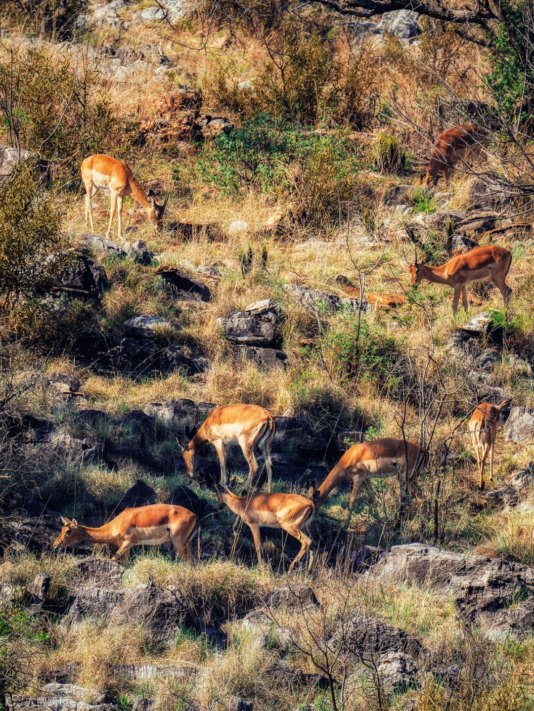 在我去拍摄的保护区,还能看到瞪羚的身影。由于它们是狮子和猎豹的主要捕食对象,所以其警惕性很高。上图中,一排的瞪羚正在觅食,神奇的排列配上非洲独特的地貌,画面动态感十足。Z 8能够提供同步的VR减震技术,机身内置的5轴VR减震和镜头的2轴VR减震相结合,实现了相当于提升高达约6档快门速度的效果,在较慢的快门速度或使用长焦镜头的手持静态摄影中,有助于防止由相机抖动造成的图像模糊。