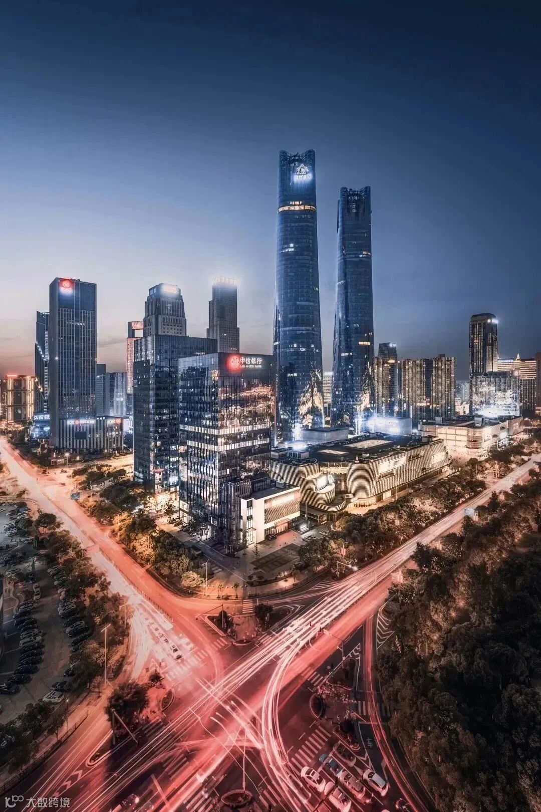 同样的视角,但当太阳落下之后的蓝调时刻,却有着不一样的气氛。我使用包围曝光的拍摄方法来获得一张底片,然后再通过尼康Z 5的拓展最低感光度,以及利用更小的光圈来延长曝光时间,使得画面道路上的车流形成轨迹,为画面赋予更多动感和色彩,最后通过后期合成为一张精彩的都市夜色氛围感画面。