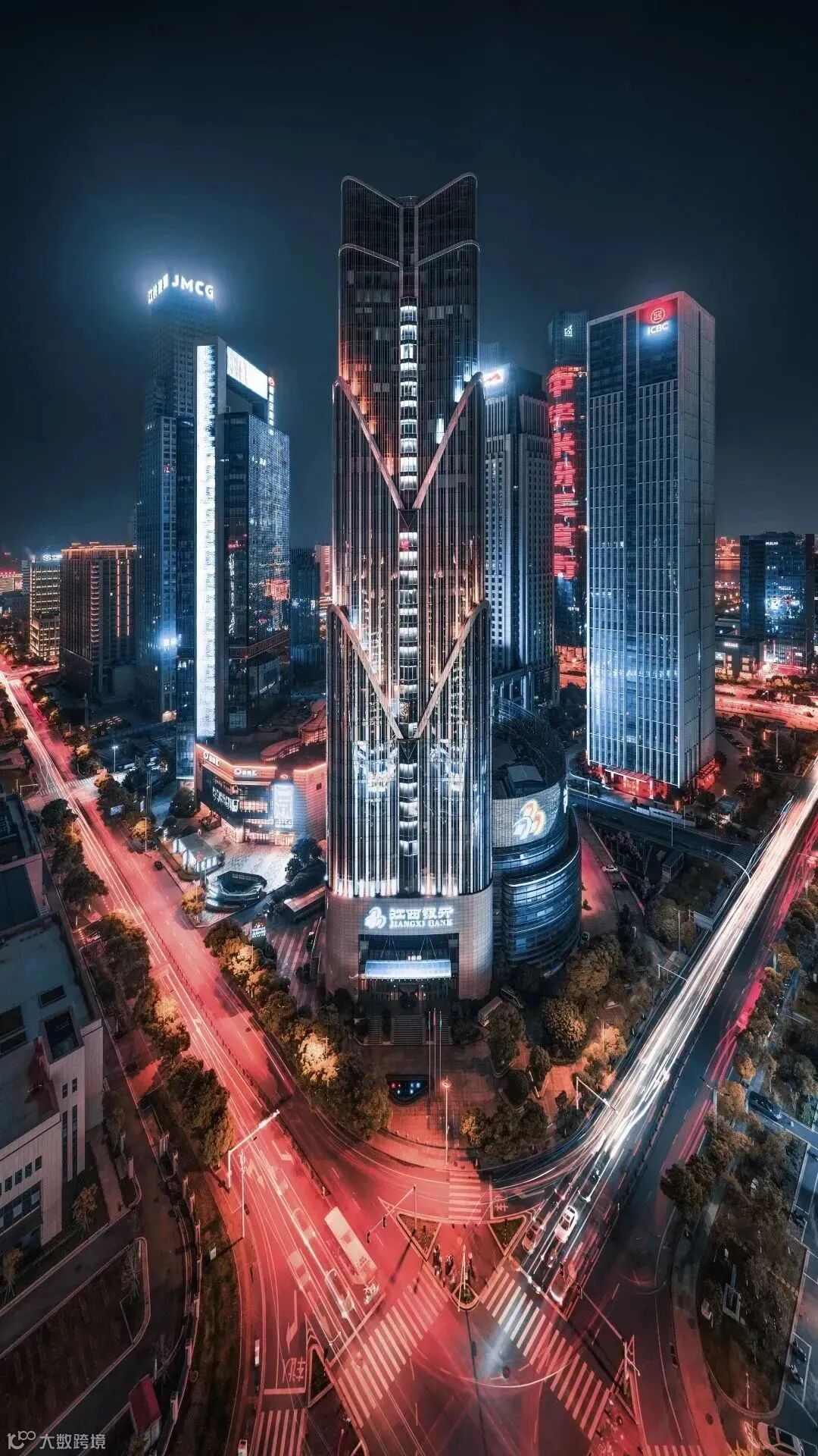 南昌CBD的建筑设计都极具特色,当夜晚的霓虹灯亮起,仿佛进入了赛博朋克世界。在近距离拍摄城市风光时,一个视角足够广的广角镜头是必不可少的,在这里我使用了尼克尔 Z 14-30mm f/4 S的14mm端,将肉眼所见全部收入镜中。面对建筑上耀眼的灯光,我使用了包围曝光来保证亮部与暗部的细节能够被全部保留。在长曝光下,得益于尼康Z 5全画幅传感器的实力,拍摄出的照片画质依然纯净。
