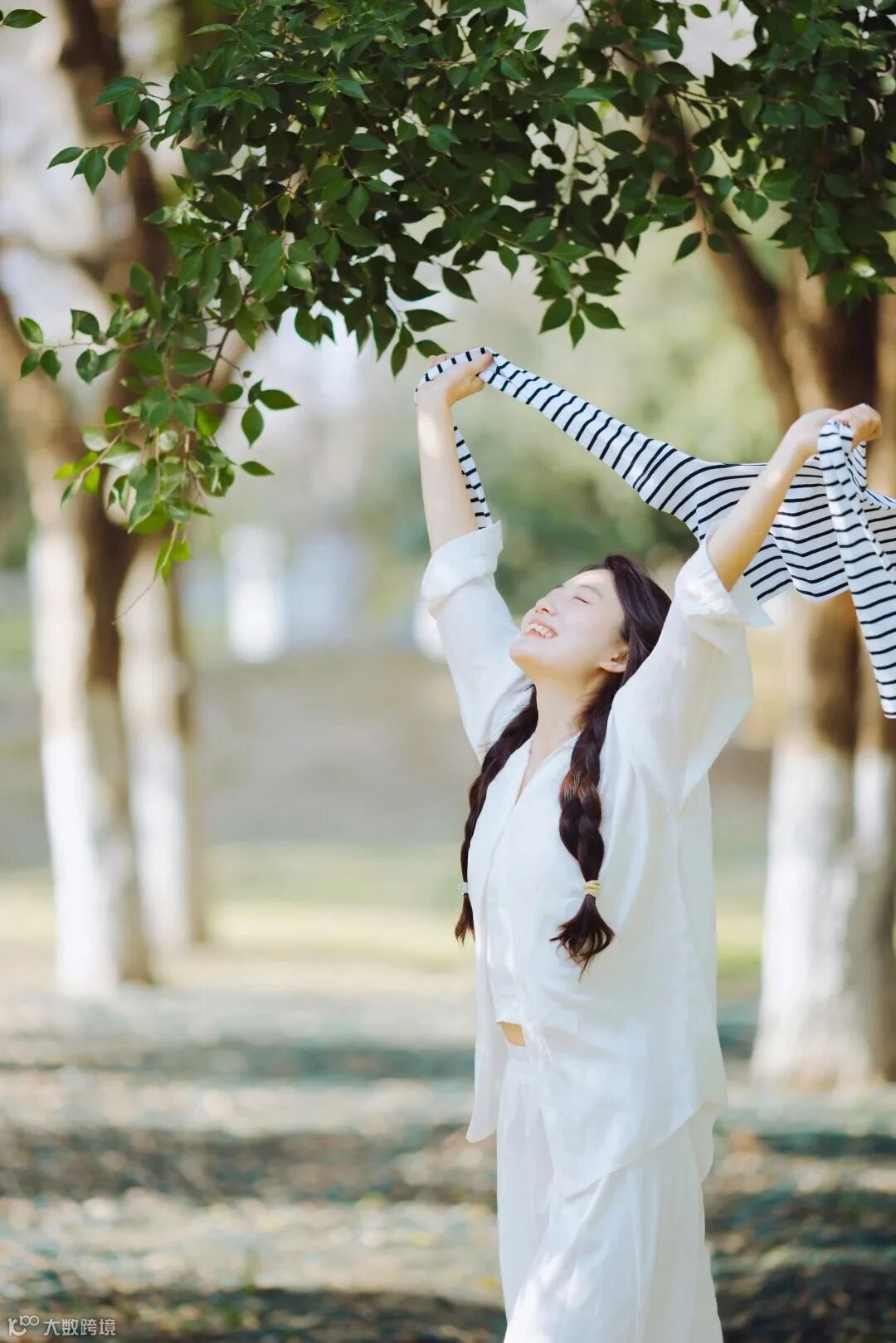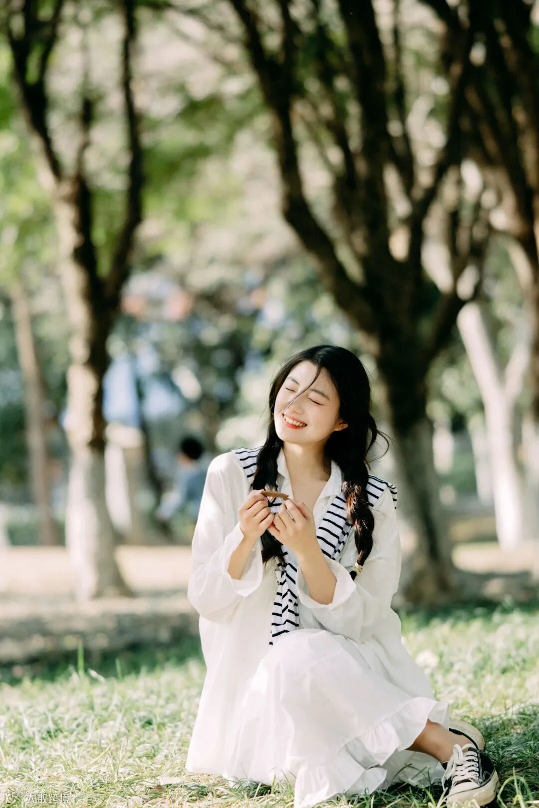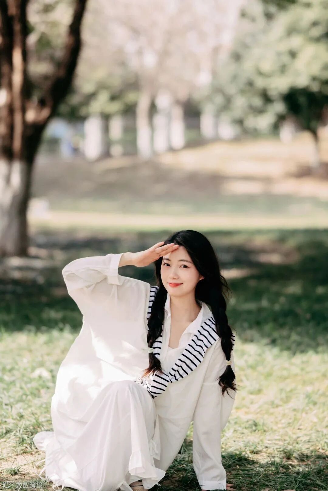除了花海外,绿色的植被同样是春日的代表元素,不像夏日树木那般浓郁,春日的公园绿野呈现出的是更加淡雅柔和的色彩,搭配一身清爽的白色长裙,更显舒适与惬意。同样借助尼克尔 Z 85mm f/1.8 S镜头的高素质表现,即便在充满光影变化的高光场景下,人物与服饰轮廓也没有出现色散的情况,画质值得肯定和称赞!