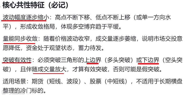 对称三角形,就是两边高点和低点逐渐收敛,最终形成一个等腰三角形的走势结构。这种形态既可能出现在上涨趋势中,也可能出现在下跌趋势中,算是最中性的一个。
