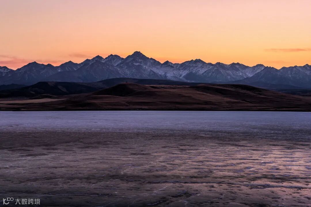 冬季高原湖泊的日落另有一番宁静安详的味道。遗憾的是这个冬天西北地区还未迎来一场大雪,但在远方的山尖上,若隐若现的白色痕迹,便是诠释冬日的符号。无论是色彩还是从近至远的冰湖与山脉的质感,都清晰地记录下来。
