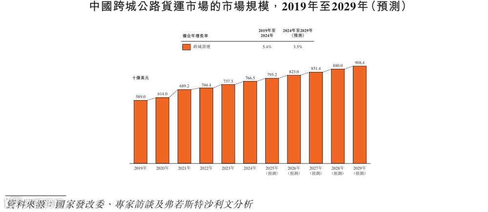 根据弗若斯特沙利文的资料,2024年,跨城货运板块的全球交易总额(GTV)预计将达到7,665亿美元,并预计在2024年至2029年期间,以3.5%的复合年增长率稳步增长。尽管同城货运市场规模巨大,但行业面临的挑战也同样巨大:非标化、需求低频和竞争异常激烈。