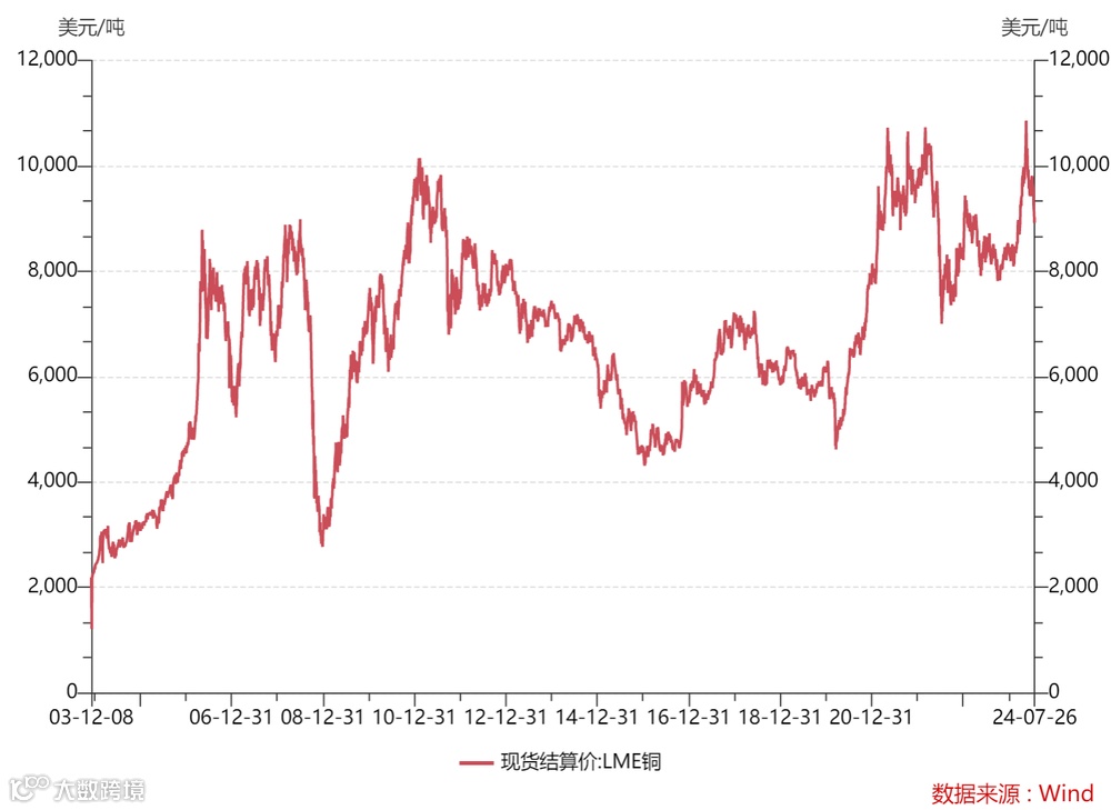 然而,之后铜价经历了显著下跌。尽管7月初曾出现反弹,但整体下行趋势未改。目前,伦敦金属交易所(LME)铜价已跌破每吨9,000美元,回落至4月初的水平。与此同时,洛阳钼业的股价自4月高点以来,最大跌幅达到30%。