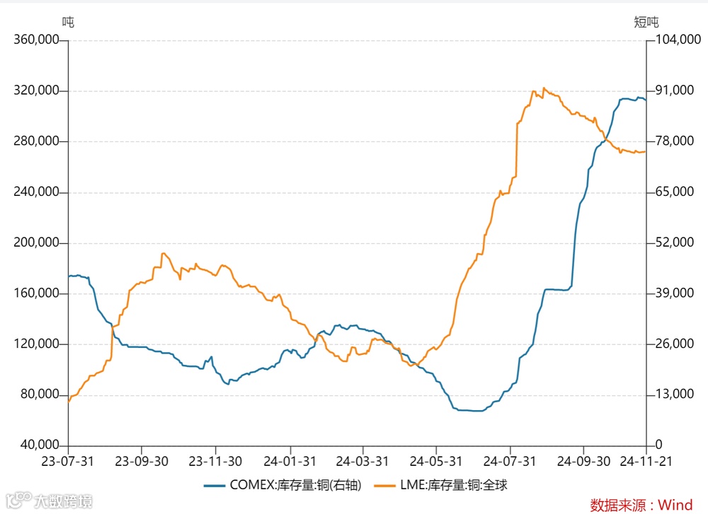 此外,2024年11月15日,税务局、财政部联合发布了2024年第15号公告称,取消铝材、铜材以及化学改性的动、植物或微生物油、脂等产品出口退税。这一举措会导致铜的出口成本上升,可能导致部分海外订单流失,出口压力增大。