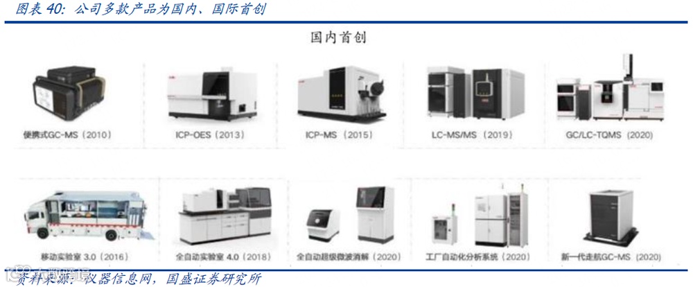 杭州谱育目前已在光谱、色谱、质谱等方面开发出多款产品。公司的三重四极杆质谱联用仪获得国家重大科学仪器设备研制专项成果,其中ICP-MS电感耦合等离子体质谱仪是全球仅有的3家厂商之一,也是中国唯一的厂商;四杆串联质谱ICP-QTOF为全球仅有2家厂商之一,产品有很强的竞争力。