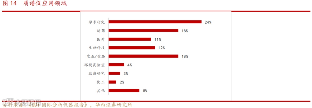 质谱仪的应用范围比较广,在高校的学术研究、制药、医疗和食品、环境等领域都有应用,医药行业是主要的应用领域。从销售数量来看,国内医药行业每年几千台,数量相对多一点,环境行业每年一千台左右,食品大约两三千台。