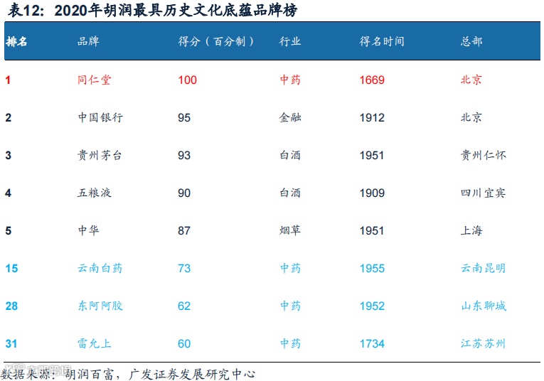 同仁堂品牌始创于1669年(清康熙八年),自1723年(清雍正元年)为清宫供御药,历经八代皇帝长达188年。北京同仁堂与广誉远国药、杭州胡庆余堂、广州陈李济并称为“清代四大名店”,其品牌位居2020年胡润最具历史文化底蕴品牌榜的首位。