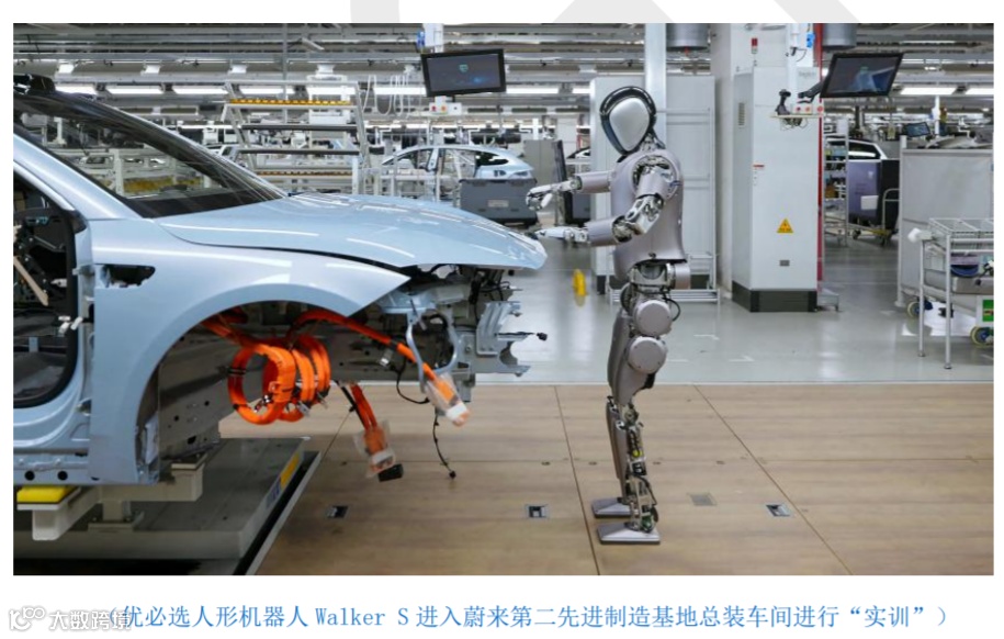 特斯拉、优必选、小米、小鹏、智元机器人等人形机器人厂商均已将目光聚集于工业制造领域,预计人形机器人将有望在汽车领域率先批量使用。例如:国内厂商优必选推出的工业版人形机器人WalkerS,已经进入蔚来制造基地进行实训。