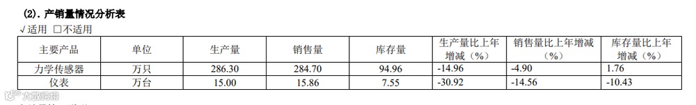 在这样的行业趋势下,2023年柯力传感力学传感器的产销量分别为286.30万只、284.70万只,分别同比减少14.96%、4.90%,产销量承压明显。