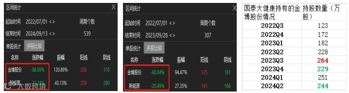 且在金博股份下跌期间,徐治彪管理的国泰大健康并没有太多减持,大部分时间是越跌越补相较该基金最初建仓时123万股,2024年2季度的244万股持股已经翻了一番。