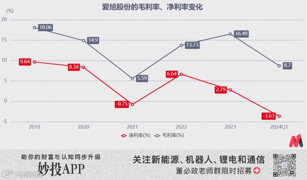 2023年下半年以来,行业供需格局发生变化,全产业链产能阶段性过剩问题凸显,导致产品价格波动下行,这无疑对爱旭股份的毛利率产生了负面影响。