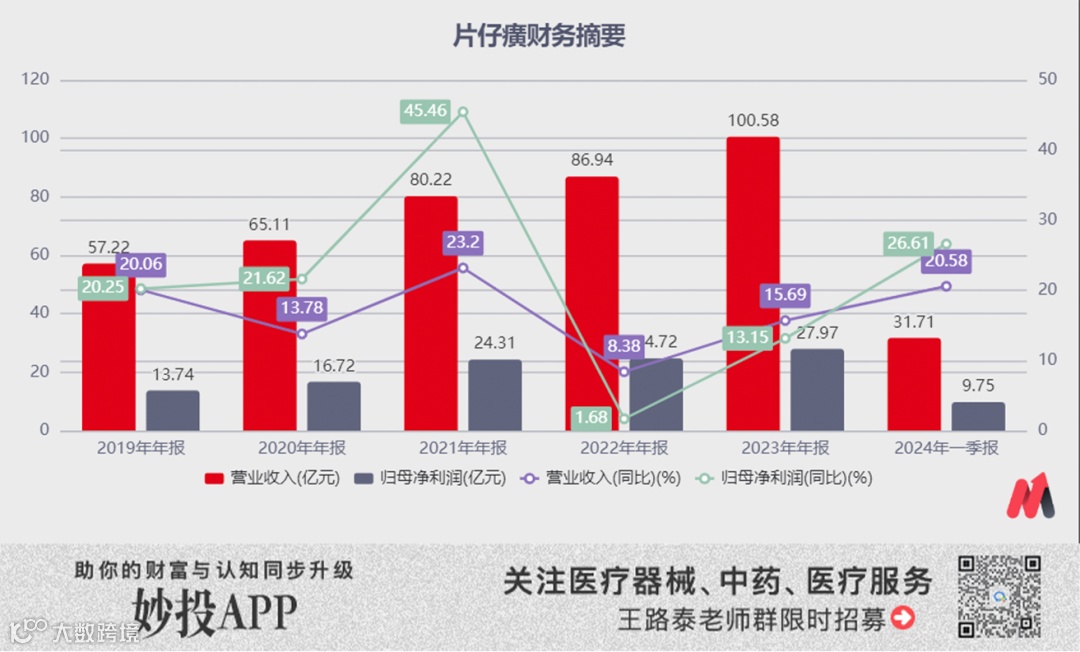日前,中药茅片仔癀发布了2024年一季报。财报显示,公司一季度营业收入31.71亿元,同比增长20.58%;归母净利润9.75亿元,同比增长26.61%。公司单季度的业绩增速扭转了2022年以来的下滑趋势,创出了新高。