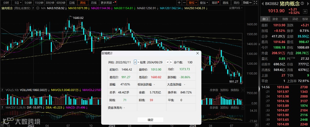 2024年5月-2024年8月:猪肉概念板块下跌25%。