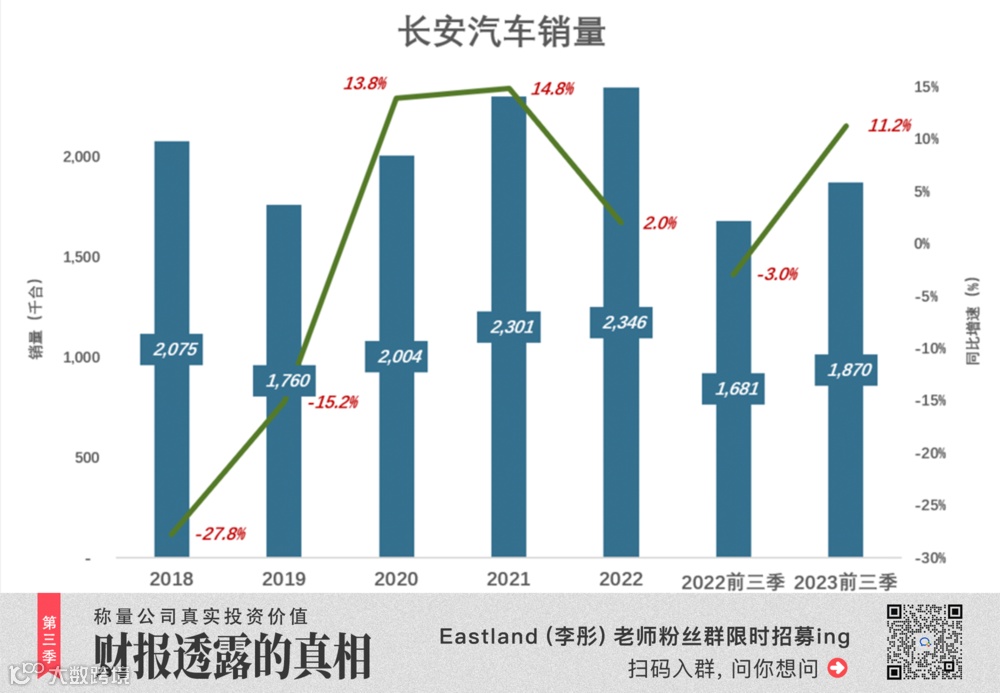 2023年前三季度,长安汽车销量187万辆,同比增长11.2%。