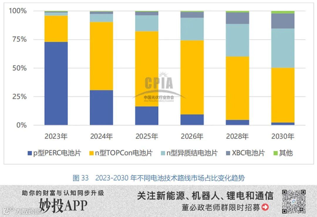 当下,光伏电池技术正从P型电池PERC升级到更为先进的电池(即TOPCon、HJT、BC类)。