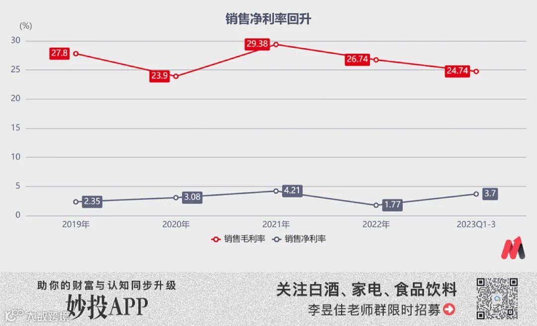 所以品牌知名度高、性价比提升后的三只松鼠,在线上线下渠道新增量的带动下,薄利多销盈利模式又跑得通了,3.7%的销售净利率已超过2019年水平,公司中期可持续发展的模式和目标更清晰了。