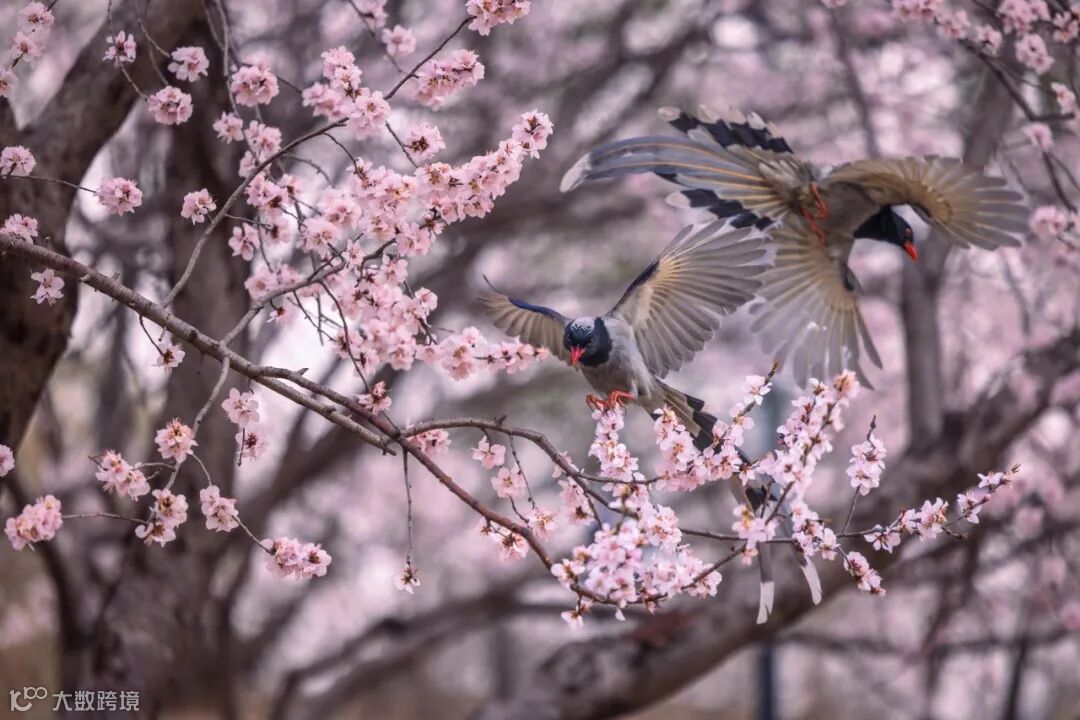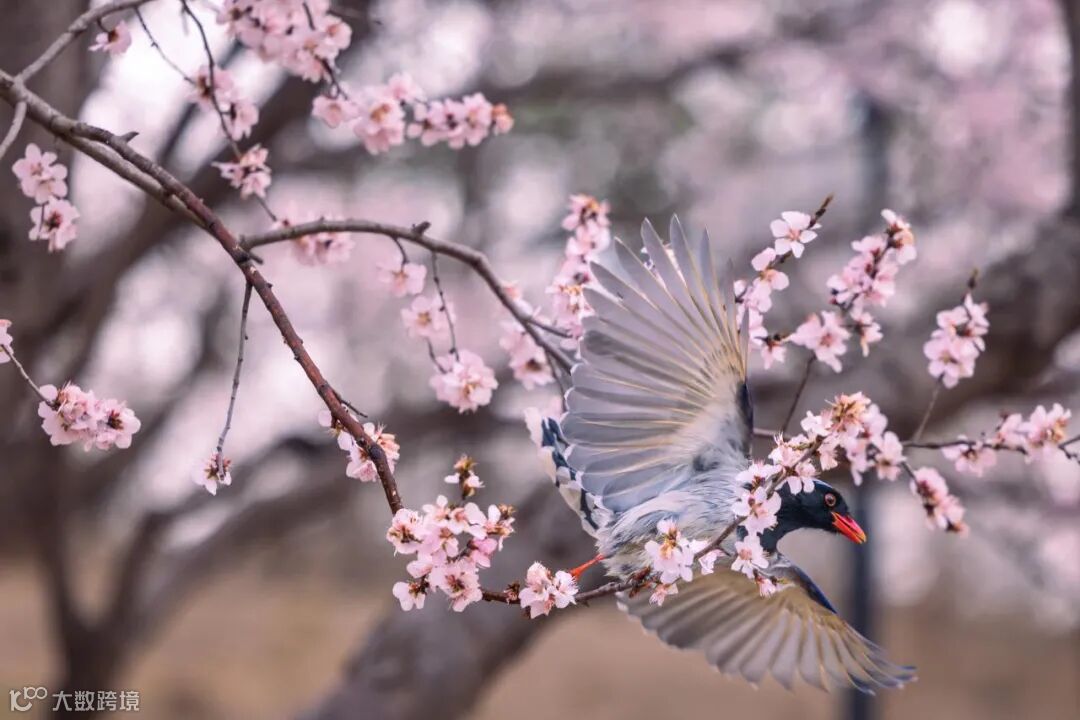 在拍摄这张照片时,我刻意选择了造型优美的树枝作为前景,同时,通过调整三脚架的高度和相机拍摄角度,避开其他杂乱的树枝,选择远离前景的桃花作为背景,在F2.8的大光圈之下虚化,通过虚实对比丰富画面层次,提升感光度,把快门速度提升到了1/2500 秒。借助Canon EOS R5卓越的连拍性能,捕捉下红嘴蓝鹊完美的展翅。