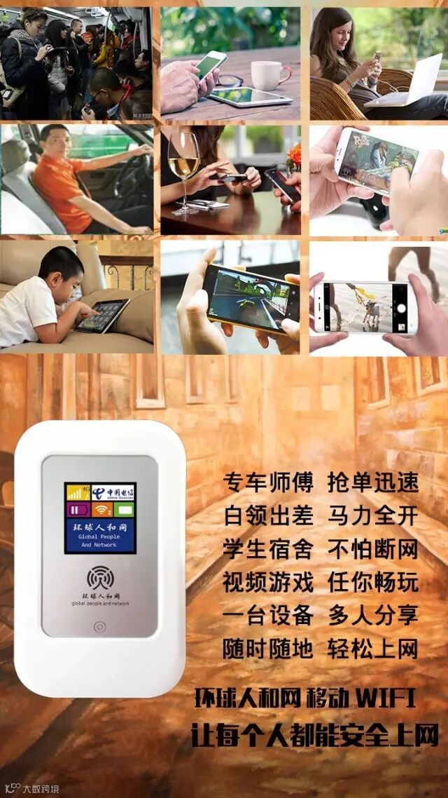 环球人和网WiFi无限流量上网神器,由实力雄厚中和环球(北京)互联网科技有限公司与中国电信合作创新发明!迷你移动无线Wi-Fi(中国电信无线宽带)。全国通用,手机信号有效覆盖区域,全国通行,私享独立安全,为您解决钓鱼、诈骗、网购隐患等后顾之忧!