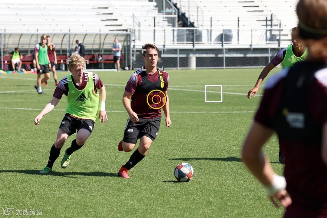 我定义了一个自定义区域,大致相当于球员的高度和宽度,下方留了一点地面,以便我可以看到球。然后我可以将注意力集中在球上,于是当我开始“看”球时,该区域将位于控制球的球员上方。相机会将主要拍摄对象识别为人物,并立即开始跟踪他们的脸部或眼睛。