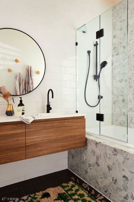 对于喜欢泡澡的人来说,家里少不了一个合适的浴缸,这个浴缸上方的花洒高度可调节,固定高度自定,淋浴或者盆浴都可以,做了玻璃隔断不用担心洗澡水外溅。
