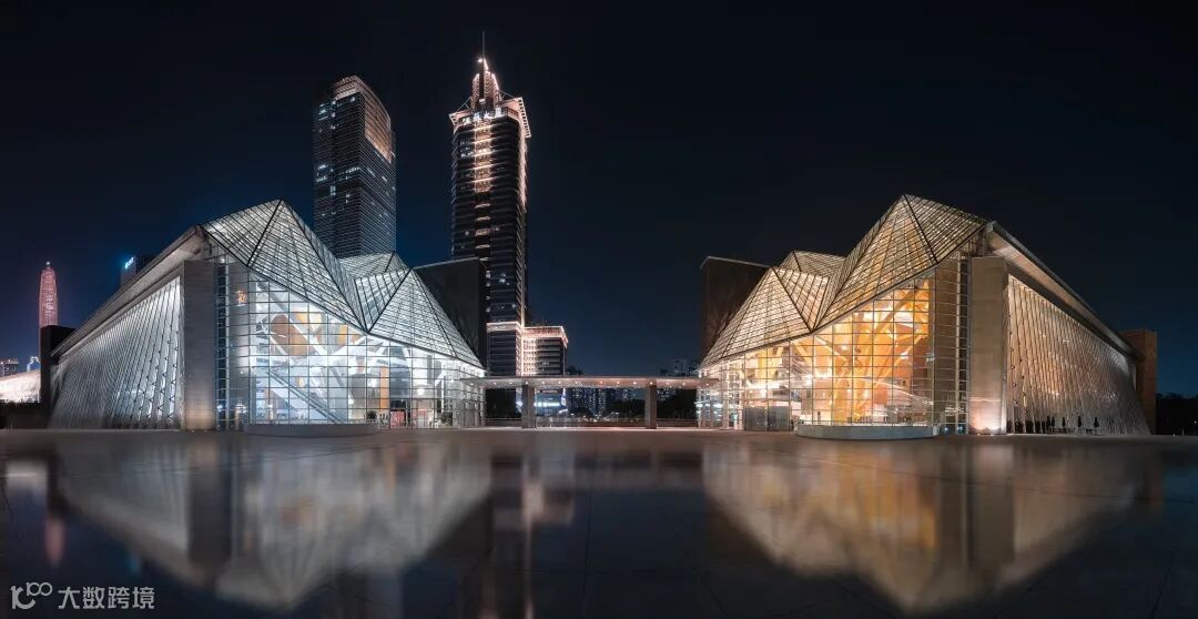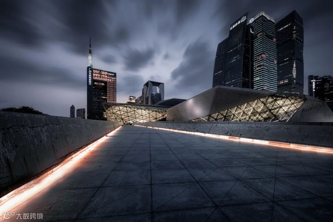 上图是广州大剧院的正面拍摄,前景和引导线是大剧院的扶梯灯带,中景和背景是大剧院本体与广州CBD,后期对建筑进行矫正,用堆栈的方法消除画面中的路人,同时降低除黄、橙色系外的色彩饱和度,使照片色调更加统一。
