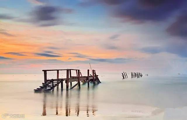 慢门最大的特点就是拍摄的画面柔和,在海水涌动不大的内海,用30s的快门速度,拍出长天一色,水面霞光交相辉映的镜面柔光效果。
