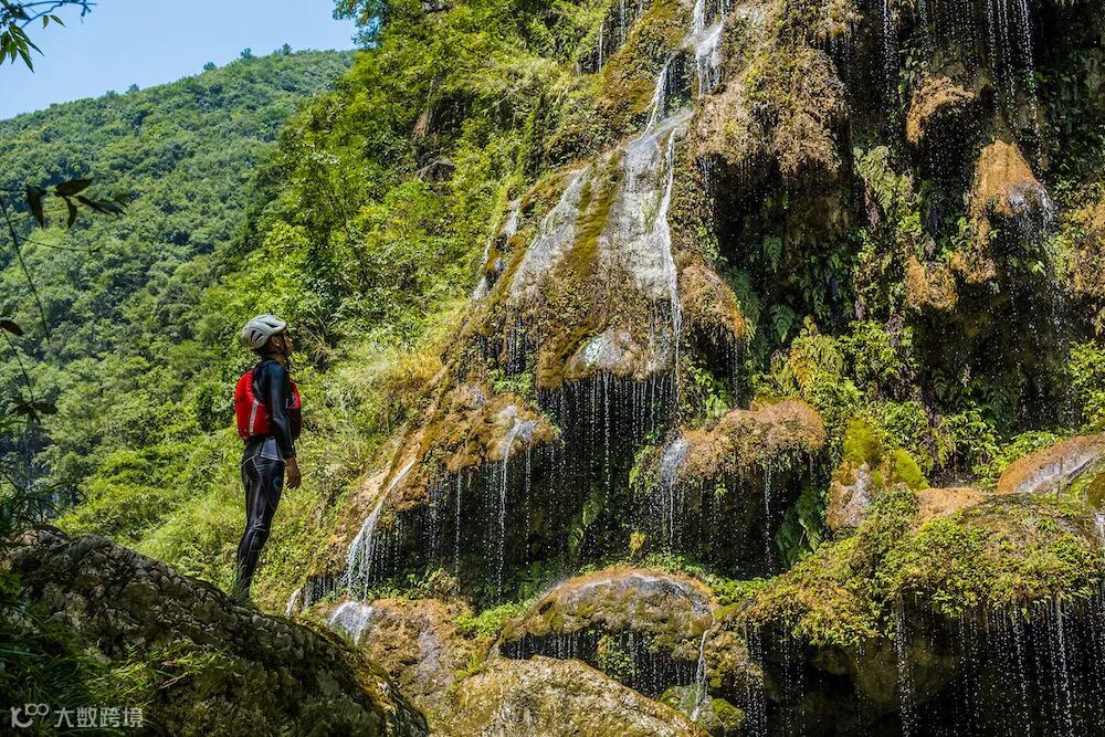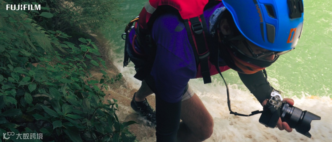 在拍摄溯溪时,瀑布的水非常大,同时也想测试一下这支镜头的全天候防护性能到底如何,因此拍摄时非常贴近被摄者,整个相机和镜头几乎全被突如其来的水花淋湿。