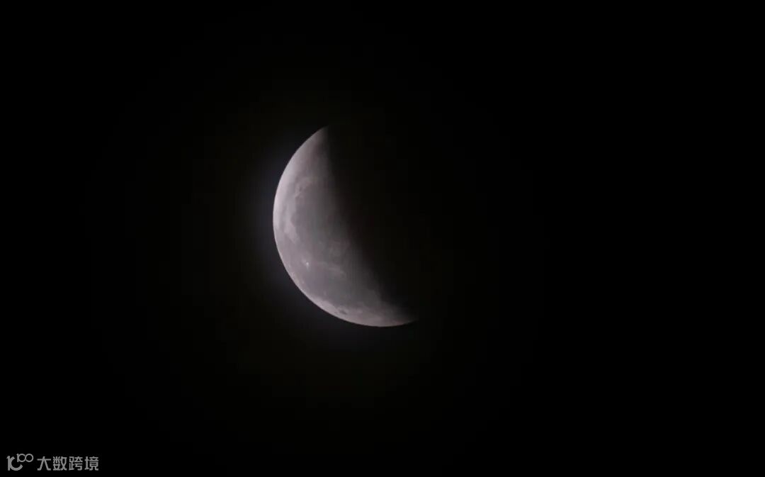 地球遮挡太阳光的区域变少,月亮逐渐被照亮,黑暗的地方跟亮的地方光比可以达到13档曝光差距。