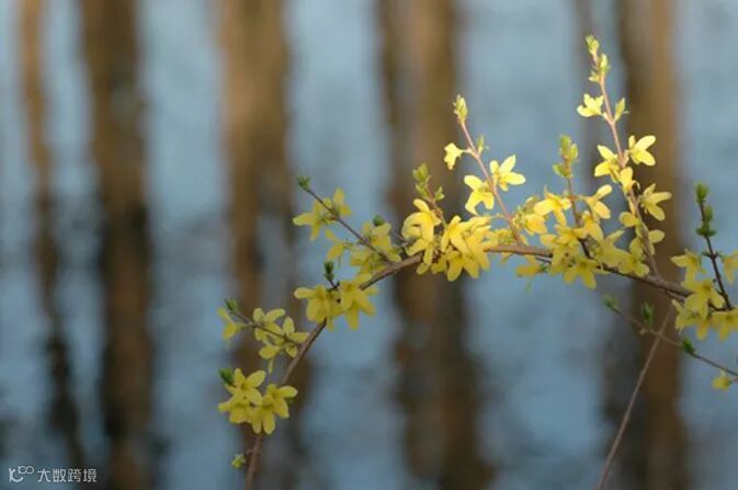 如图,有选择地把前景枝叶放在焦点之外,有意越过前景,只对后方水面中的树林倒影进行对焦,使枝叶变成了陪衬的前景。
