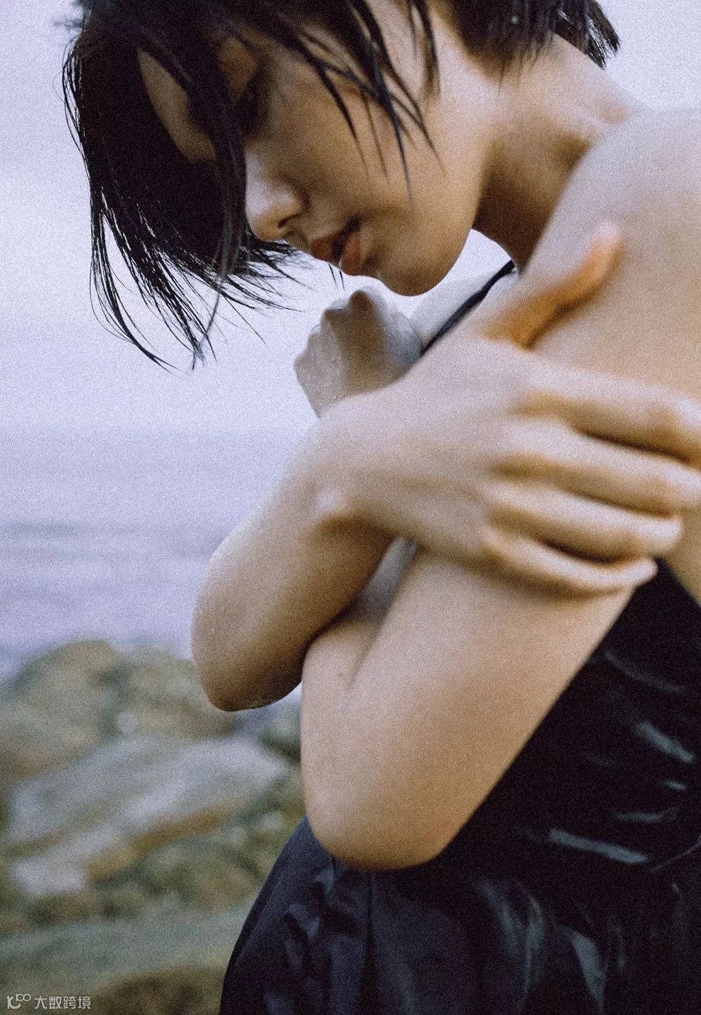 为了让画面变的干净,裁剪时只留出脸部中间位置,把轮廓不好看的位置裁减掉,让视觉中心落在眼神和嘴巴位置,给人干净清冷的感觉。